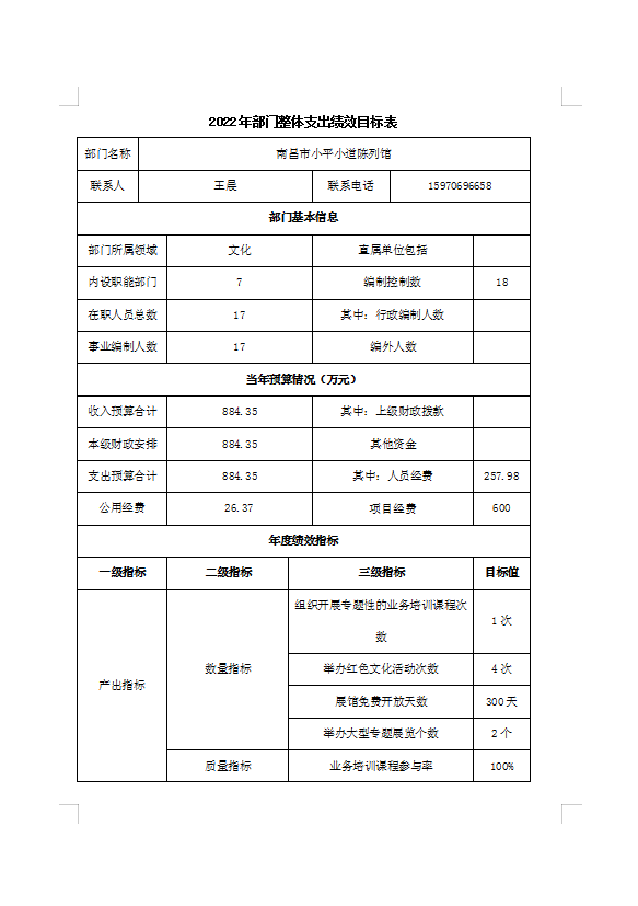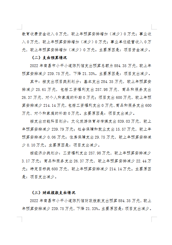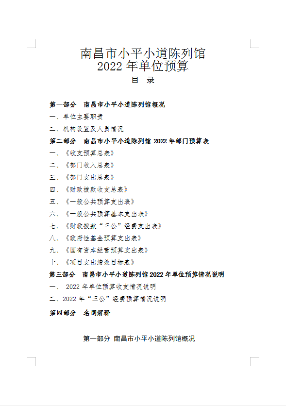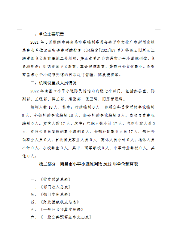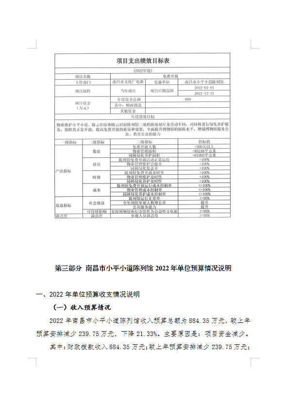 南昌市小平小道陈列馆2022年部门预算编制说明