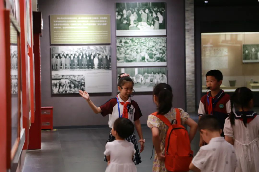 在正式上岗前,小小讲解员不仅要学习理论知识,还要走上实践岗位,锻炼讲解本领。实践环节以定点试讲+一对一现场辅导+集中展示验收形式开展,鼓励小小讲解员自信地展现自我,感受获取知识和服务社会的价值与意义。从生疏腼腆到落落大方,青少年在实践过程中积累了党史知识,锻炼了语言表达技巧、随机应变能力和人际交往本领,逐步“蜕变”为独当一面、用真情实感传播红色文化的“小小讲解员”。