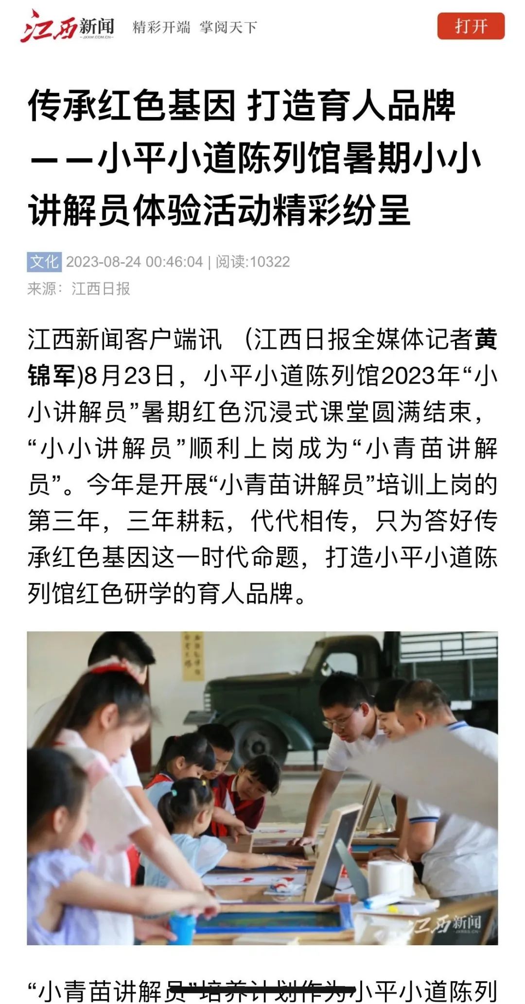 此次第三届“春天里的小青苗”培训班招募活动,被各大主流媒体纷纷转载报道,人民日报、中国纪念馆(微信公众号)、江西新闻、江西新闻广播、南昌广播电视台等媒体报道后,受到社会各界的广泛关注和好评。