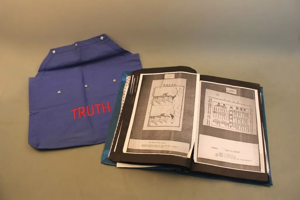 红线刺绣的“TRUTH”(真相)字样