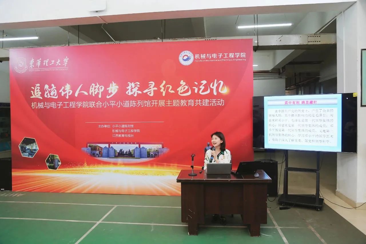 6月15日上午,专题展正式开展,机电学院工程训练中心一楼座无虚席,小平小道党支部书记、馆长李菁及东华理工大学党委常委、副校长夏菲先后致辞。随后,小平小道副馆长孟欣带来专题党课《改革开放从这里走来》。课程回顾了邓小平同志16岁远渡重洋,赴法国勤工俭学,接受马克思主义,加入中国共产党,牢固树立起一名共产党人为人民谋幸福、为民族谋复兴的初心和使命的壮阔人生,重点介绍了邓小平同志谪居江西时如何深入剖析中国国情,融入赣地民众,如何通过深入的学习与思考将“小平小道”延伸为一条通往国富家强、人民幸福的中国特色社会主义康庄大道。