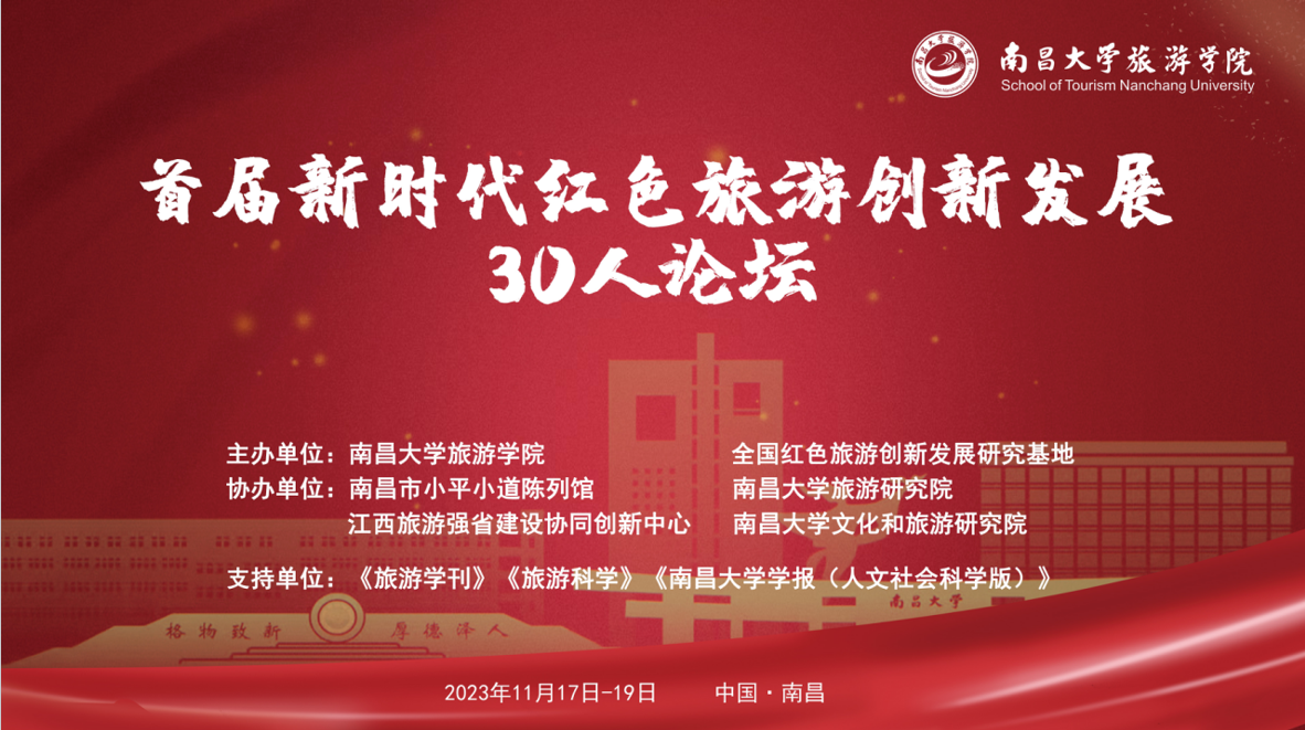 2023年11月18日下午,由南昌大学旅游学院和全国红色旅游创新发展研究基地——南昌大学江西红色旅游研究中心主办,南昌市小平小道陈列馆、南昌大学旅游研究院、江西旅游强省建设协同创新中心和南昌大学文化和旅游研究院协办,《旅游学刊》《旅游科学》和《南昌大学学报(人文社会科学版)》作为学术支持单位的“首届新时代红色旅游创新发展30人论坛”中青年学者论坛在南昌市小平小道陈列馆成功举办。