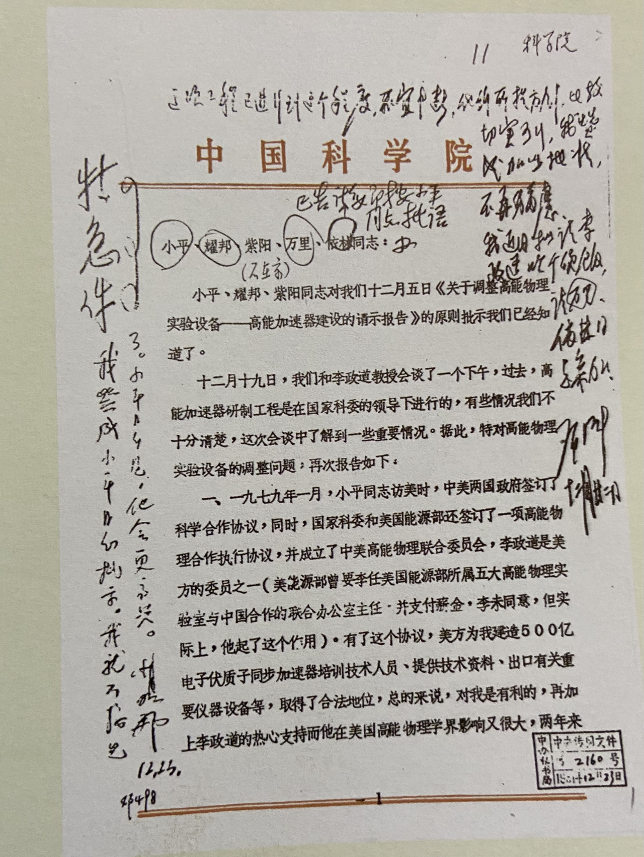 ▲ 在《中科院关于正负电子对撞机方案》上的批示