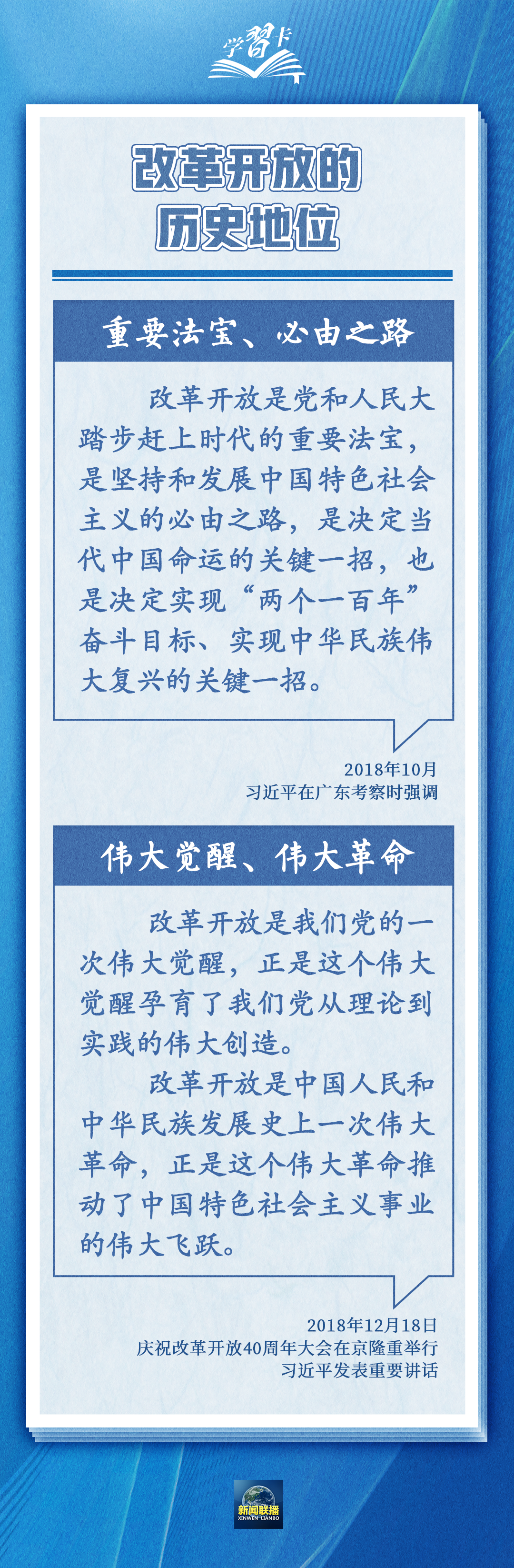 今年是改革开放45周年。改革开放是决定当代中国前途命运的关键一招。为全面建设社会主义现代化国家、实现中华民族伟大复兴,党的二十大把“坚持深化改革开放”明确为必须牢牢把握的五个重大原则之一。2013年,习近平总书记在中共十八届三中全会上发表重要讲话,围绕“全面深化改革”提出工作部署,并多次在重要场合强调“改革不停顿、开放不止步”,十年深改有哪些成效?一起学习→