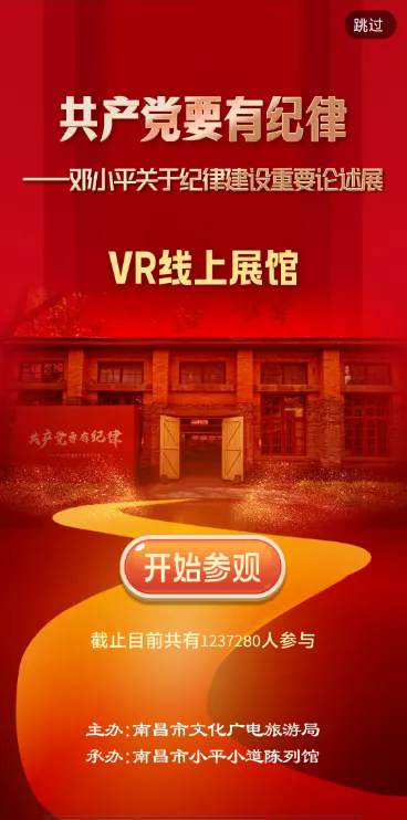 本次线上展览,我馆在原有数字展馆基础上,通过VR科技赋能,打造沉浸式体验场景,进一步丰富了线上展览资源。游客可通过“南昌市小平小道陈列馆”微信公众号底部的“数字展馆”栏目,点击“共产党要有纪律”参与本次线上展,也可浏览更多此前推出的数字展览。