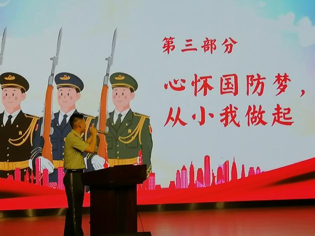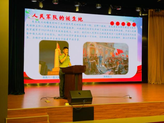 军旗是军队灵魂和精神的象征,也是激励鼓舞全体官兵团结战斗的旗帜。来自江西武警总队南昌支队的官兵通过一段段视频,一张张图片,为同学们讲述了军旗的演变过程以及军旗背后的故事,让同学们从鲜红的旗帜下见证了中国军人的青春与热血;见证了90多年前中国共产党领导下的人民军队高举着军旗一往无前、英勇奋战的革命历史。使同学们更加了解人民军队,更加热爱和崇敬人民军队。国旗凝聚力量、党旗引领方向、军旗鼓舞斗志。同学们的国防意识和爱国主义精神得到了进一步增强。