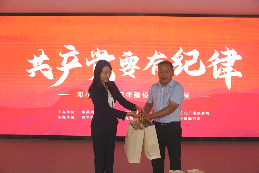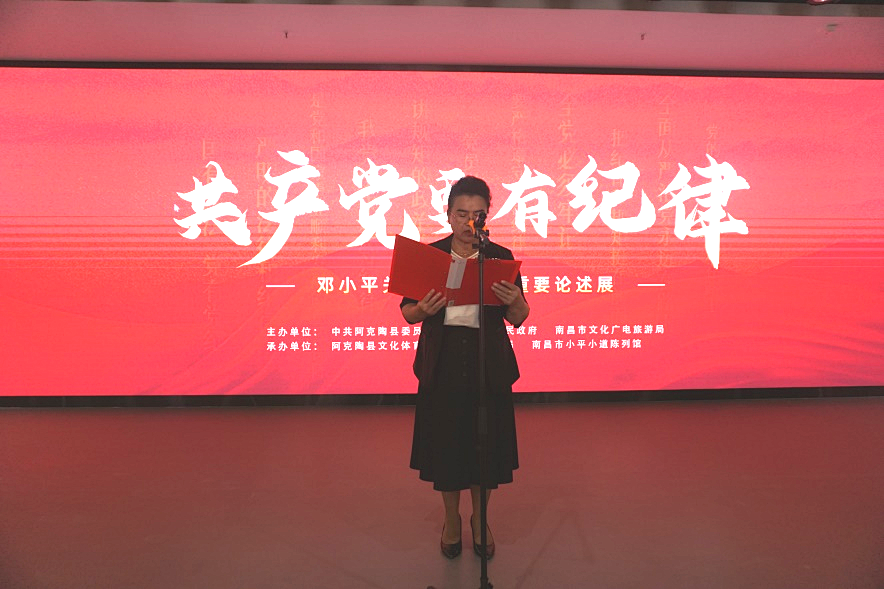为持续推进新时代文化润疆方略,促进两地文化交流,2024年9月23日上午,由中共阿克陶县委员会、阿克陶县人民政府、南昌市文化广电旅游局主办,阿克陶县文化体育广播电视和旅游局、南昌市小平小道陈列馆承办的《共产党要有纪律——邓小平关于纪律建设重要论述展》巡展开幕式在阿克陶古城历史文化陈列馆顺利举办。