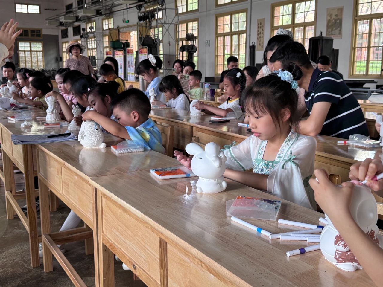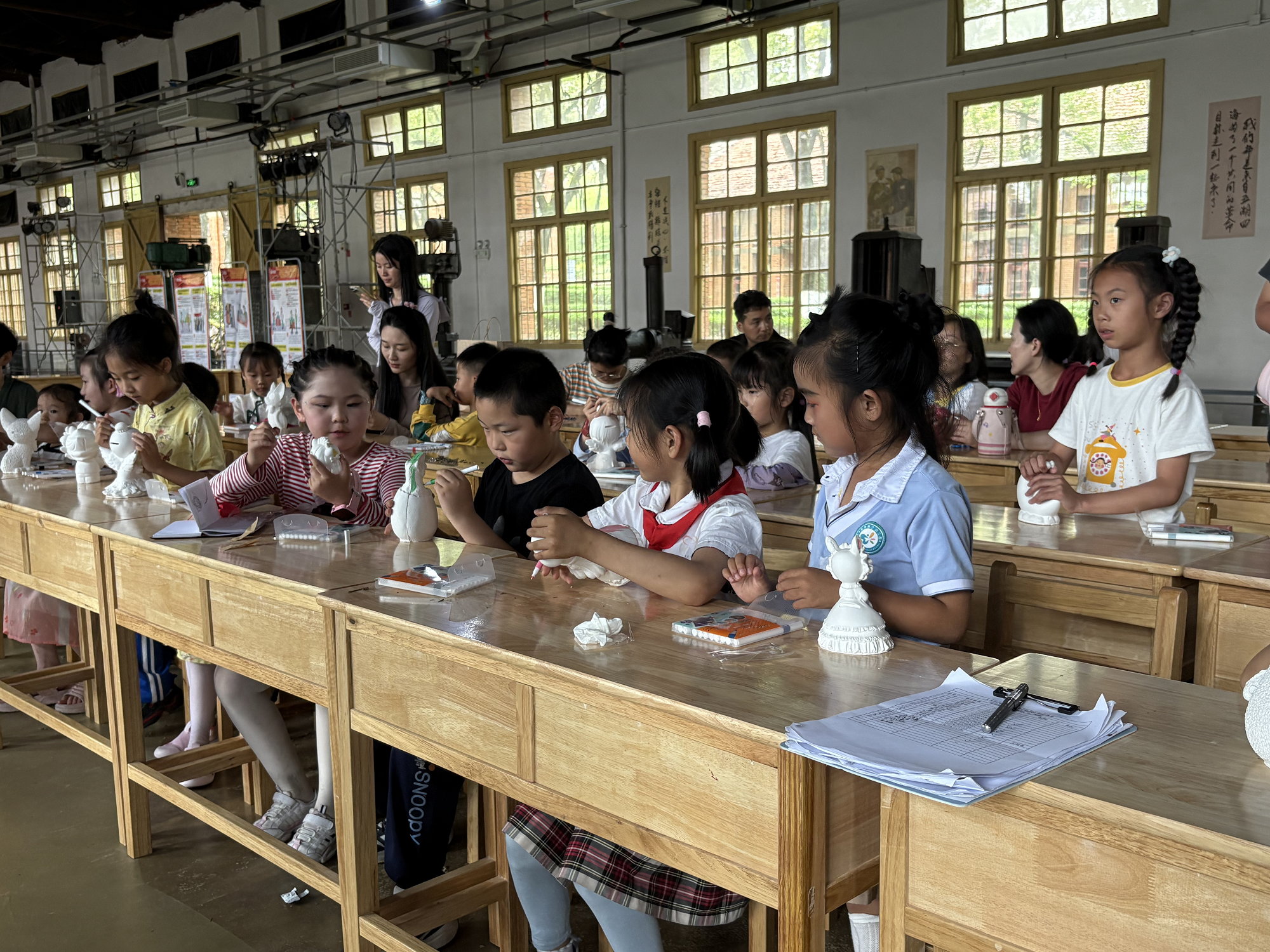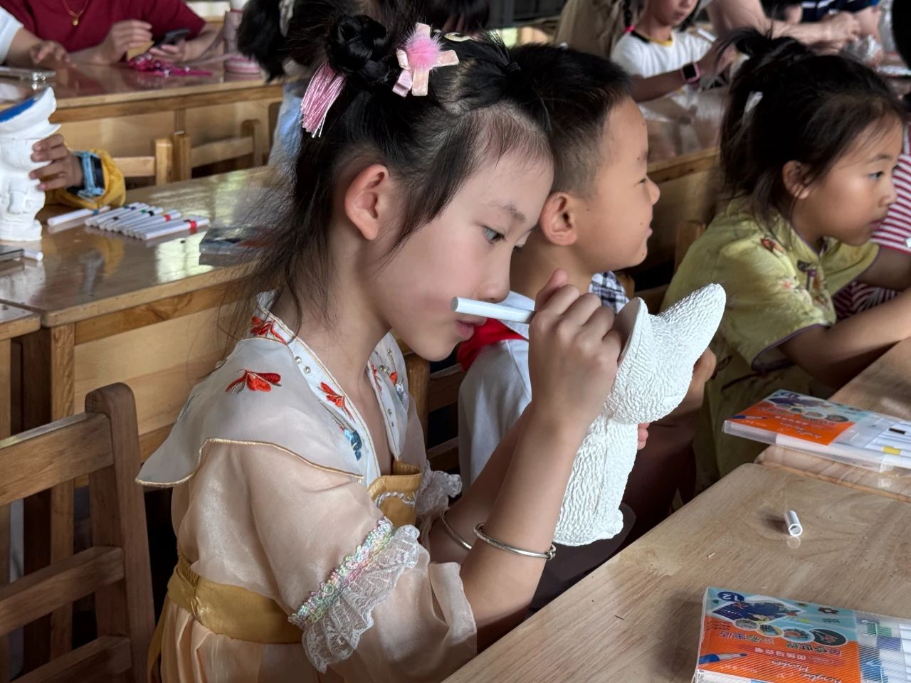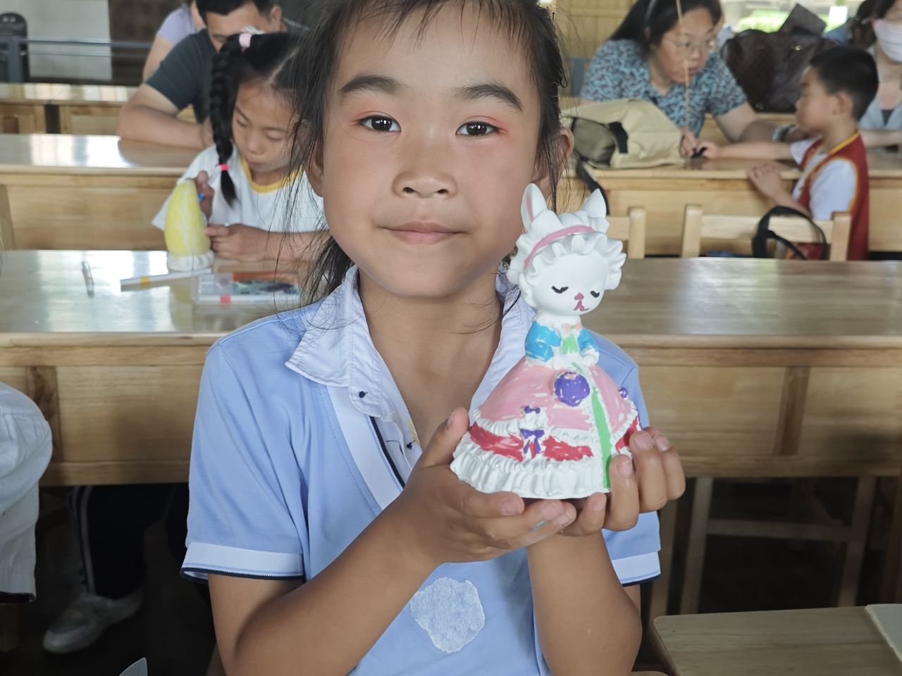 创意彩绘环节更是欢乐无限。同学们化身为小小艺术家,拿起画笔,发挥天马行空的想象力,为洁白的石膏娃娃披上五彩斑斓的“外衣”。不一会儿,可爱的卡通形象、个性十足的创意作品纷纷呈现,每一个石膏娃娃都独一无二,充满童真童趣。