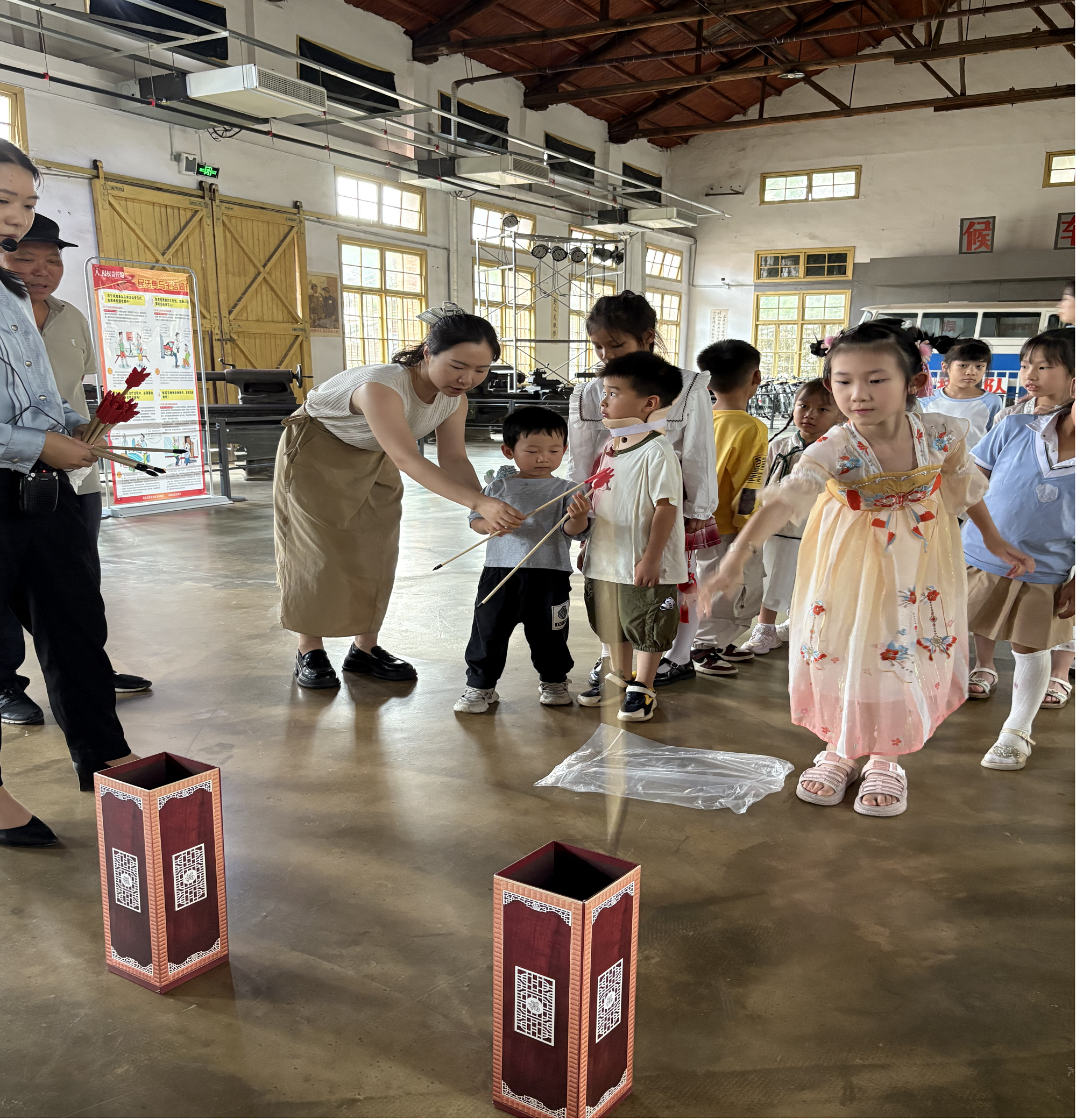 投壶活动将现场气氛推向高潮。同学们手持箭矢,屏气凝神,瞄准壶口奋力投掷。欢呼声、加油声此起彼伏,大家在体验传统游戏魅力,体验投射“五毒”过程的同时,也感受到了竞技的乐趣。成功投中的同学欢呼雀跃,收获了满满的成就感。
